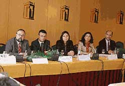 Xunto aos directores xerais, participan na xuntanza o profesor de Economía da Universidade de Alcalá de Henares Juan Francisco Jiménez, o catedrático de Economía Aplicada da Universidade Autónoma de Madrid Santos Miguel Riesga e o director de relacións Laborais do grupo PSA-Citroen de Vigo, Miguel Ángel Puyme.
